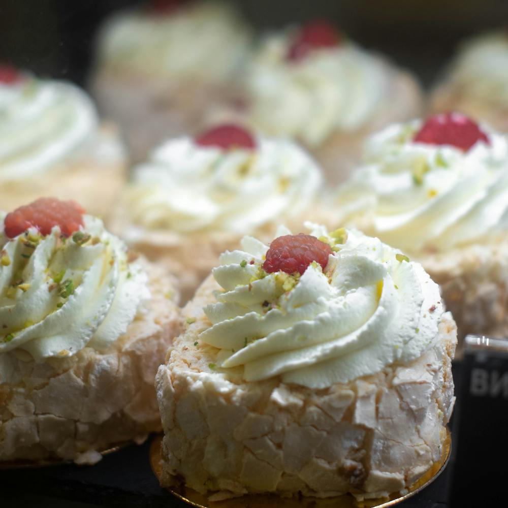 Fresh berries like strawberries, blueberries, and raspberries add natural sweetness and acidity, balancing the sugary meringue beautifully. The combination of textures — crisp shell, soft interior, fluffy cream, and juicy fruits — creates a dessert that is both refreshing and indulgent.