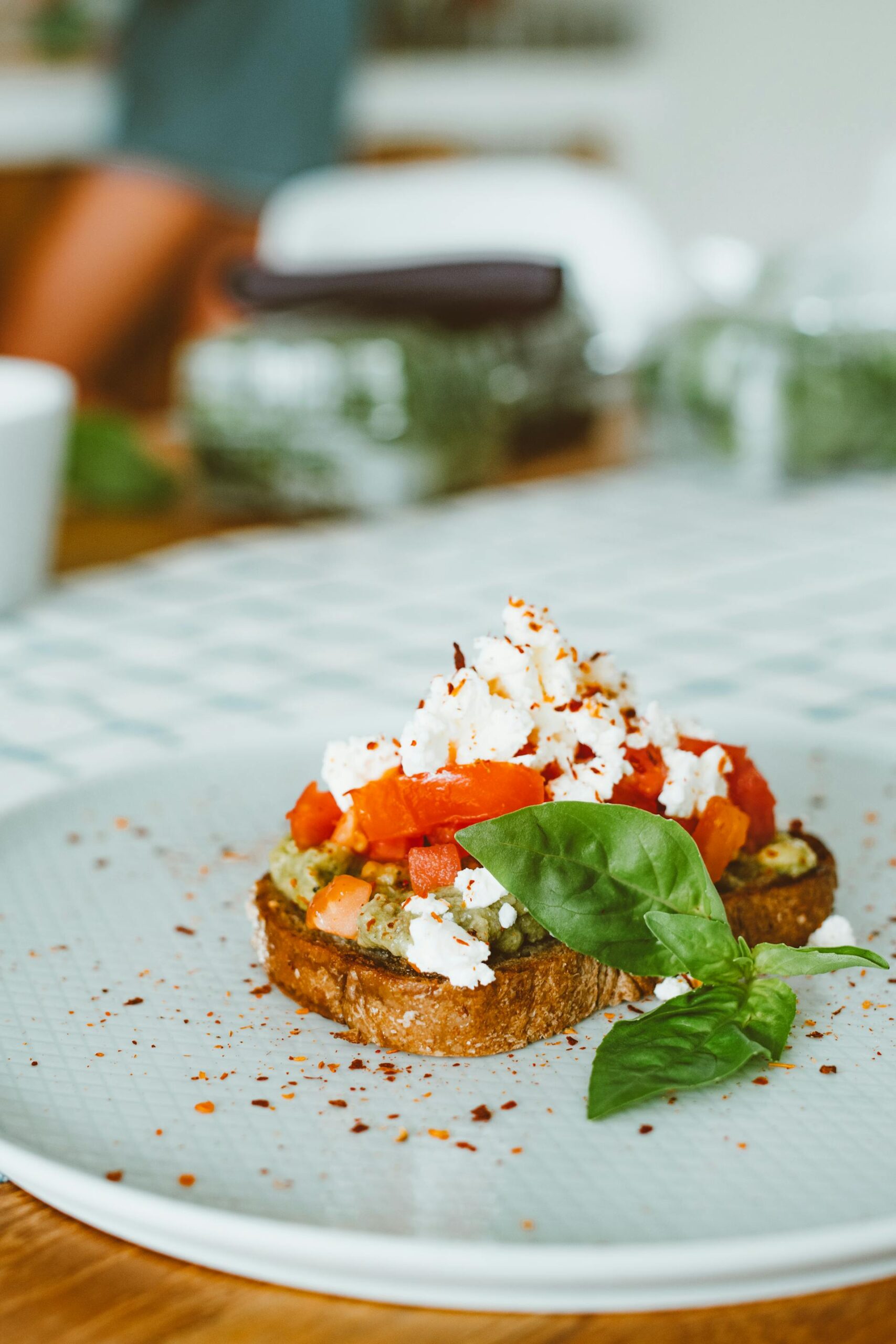- Mix diced tomatoes, olive oil, garlic, and salt.